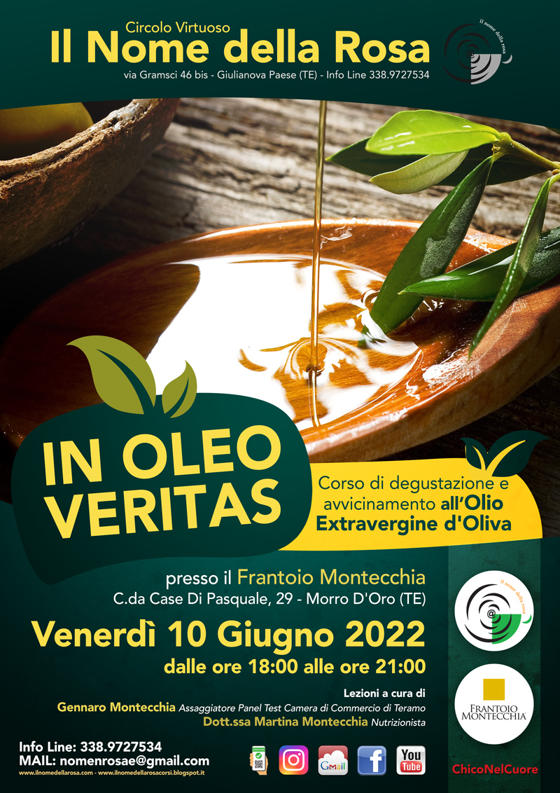 admin2022-05-29T16:58:56+01:00Circolo virtuoso Il nome della Rosa Giulianova Alta, Via Gramsci 46/a Info Line 338/9727534 Venerdì 10 giugno ORE 18,00/21,00 C/O Frantoio Montecchia – Morro D’Oro FORMAZIONE “IN OLEO VERITAS” Corso di degustazione olio EVO A cura di: Gennaro & Martina MONTECCHIA Il corso, strutturato in un unico appuntamento da tre ore, affronta tematiche destinate [...]