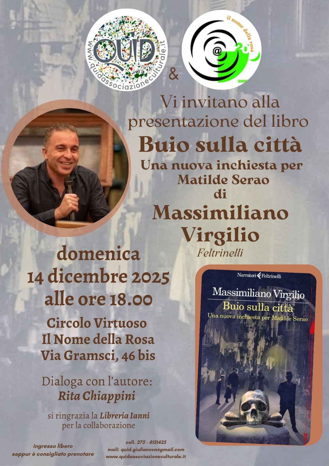 Dal 2024 ha dato avvio con Feltrinelli a una serie di “inchieste” dedicate a Matilde Serao: dopo Luci sulla città il primo volume ora con Buio sulla città, del quale parleremo all’incontro domenica 14 dicembre, continua a trasformare la grande giornalista del passato in investigatrice protagonista di noir storici.